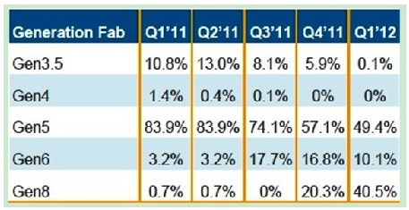 友達、新奇美、京東方、華映和瀚宇等廠商計劃于 2012年將更多資源投入到生產(chǎn)平板電腦面板上。盡管五代線和更低世代線主要以生產(chǎn)小筆電和平板電腦面板為主,但到 2012年第一季,預(yù)期有超過一半的小筆電和平板電腦面板將放在六代線和八代線上生產(chǎn)。