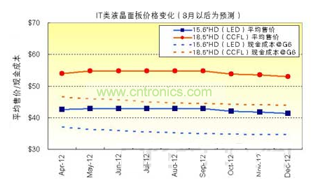 圖1:IT類液晶面板價格變化(8月以后為預測)