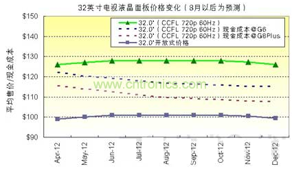 圖2:32英寸電視液晶面板價格變化(8月以后為預測)