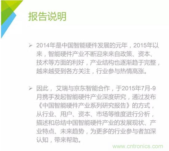 作為此次系列報(bào)告的開篇,京東智能與艾瑞對(duì)當(dāng)前智能硬件的產(chǎn)業(yè)鏈結(jié)構(gòu),發(fā)布了行業(yè)報(bào)告《2015中國(guó)智能硬件產(chǎn)業(yè)系列研究報(bào)告——產(chǎn)業(yè)鏈圖譜篇》該圖譜對(duì)現(xiàn)階段的智能硬件的發(fā)展趨勢(shì)進(jìn)行了劃分和定義,并對(duì)產(chǎn)業(yè)鏈的結(jié)構(gòu)進(jìn)行了分析。