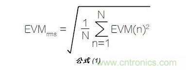 這些考慮為表示為百分數(shù)的EVM提供了以下公式,見等式1:其中EVM(n)是歸一化后的每個符號的誤差矢量幅度,N是組里的符號數(shù)量。如上所述,TR標準假設由最大參考符號進行歸一化。
