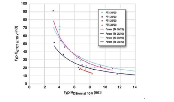 RDS(ON)直接與傳導損耗有關,而Qg直接與開關損耗有關。FOM越小,性能越好。
