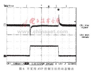 隨著VRM的深入發展,為滿足低電壓、大電流的需要,相繼提出了各種電路拓撲,如帶抽頭電感的BUCK電路、有源鉗位的BUCK電路、耦合繞組的BUCK電路、移相軟開關BUCK電路等;并有優良的控制方法問世,如V2控制、滯回控制等。以上的這些方法都甚是難以滿足電源模塊的發展需要。AVP的控制方法在適當降低負載調整率的情況下有效地改善了模塊的動態響應,在低電壓、大電流的應用場合中被人們重新認識。本文對其從理論方法進行分析,并采用新的檢測方法通過實驗證明了AVP良好的動態調節能力。