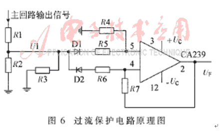適當選擇各電阻值,過電流時,就可以可靠地關(guān)斷控制電路[6]。
