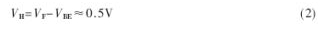 圖3中VF≈1V,施密特比較器的兩個比較點電壓分別為VH和VL,由式(2)和式(3)決定。