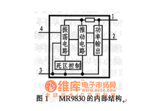 MR9830是一種集振蕩、推動(dòng)和功率輸出于一體的厚膜電路模塊。它所需的外圍元件極少,制作電子鎮(zhèn)流器十分方便,而且工作可*、價(jià)格低廉。MR9830內(nèi)部由振蕩電路、占空比及死區(qū)控制電路、推動(dòng)電路和半橋功率輸出電路等組成,其內(nèi)部結(jié)構(gòu)框圖如圖1所示。