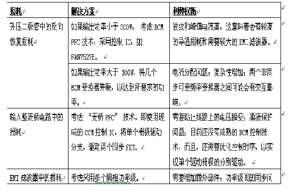 采用有源FPC技術的電源市場明顯比通用的AC-DC市場成長更快;市場對效率更高的變換器的需求已經增加。然而,提高效率并不是沒有代價的,必須在成本、部件數、可靠性和新技術之間權衡考慮 (見表1)。仔細選擇部件,并結合新的控制技術和更優化的工程手段,就可顯著提高PFC變換器的效率。