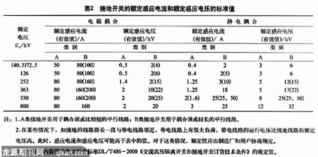 國(guó)標(biāo)GB1985中以規(guī)范性附錄C給出了接地開(kāi)關(guān)開(kāi)合感應(yīng)電流的要求和試驗(yàn)方法。接地開(kāi)關(guān)的額定感應(yīng)電流和額定感應(yīng)電壓的標(biāo)準(zhǔn)值,應(yīng)從表2中選取,試驗(yàn)次數(shù)為10次開(kāi)合操作循環(huán)。