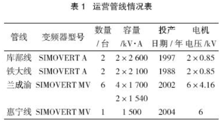 中國(guó)石油管道公司運(yùn)營(yíng)管線應(yīng)用高壓大功率變頻器情況如表1所列。