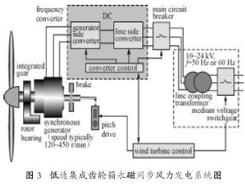 除了上述兩個方案外,還引入了兩個折中方案,一個是低速集成齒輪箱的永磁同步電機+全功率變頻器;一個是高速齒輪箱的永磁同步電機+全功率變頻器。根據美國國家可再生能源實驗室NREL報告的量化比較數據分析,這兩種折中方案也具有很大的發展潛力。