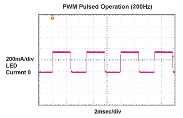 - 通過低頻PWM脈沖調(diào)制LED電流,控制LED燈源亮度