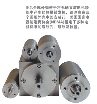 外殼散熱:對于特定的電機(jī)尺寸和扭矩負(fù)載,無刷直流電機(jī)需要在比其它兩種電機(jī)更低的內(nèi)部溫度下工作。無刷直流電機(jī)的外殼溫度通常與電機(jī)繞組溫度直接相關(guān),由于有刷直流電機(jī)具有較高的內(nèi)部熱阻抗,其穩(wěn)定狀態(tài)的外殼溫度通常比繞組溫度低得多(但這會造成轉(zhuǎn)子發(fā)熱);混合式步進(jìn)電機(jī)經(jīng)常會發(fā)熱,設(shè)計(jì)師應(yīng)該設(shè)計(jì)好產(chǎn)品,防止人員接觸發(fā)熱的電機(jī)。