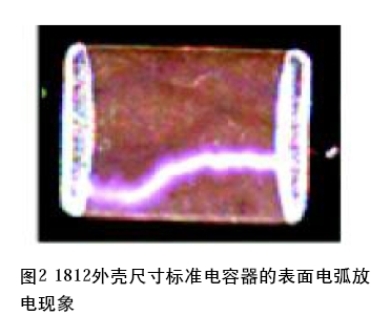這些電容器的電容值通常是相同的,所以在這種情況下每個(gè)電容器的有效電壓(VC)都等于施加在該器件上的總電壓(VT)除以電容器的數(shù)目(n)即VC=VT/n。利用這種方法可以降低每個(gè)電容器組的有效電壓。高壓電路的設(shè)計(jì)者還利用這個(gè)原理,通過(guò)串聯(lián)單個(gè)電容器來(lái)降低每個(gè)電容器的電壓。不過(guò),在兩種情況下總電容(CT)都將會(huì)下降:1/CT=(1/C1+1/C2…+1/Cn)利用一臺(tái)高速相機(jī)觀(guān)察到了另一個(gè)重要的問(wèn)題,即在一個(gè)標(biāo)準(zhǔn)電容器設(shè)計(jì)上施加一個(gè)電壓之后出現(xiàn)的表面電弧放電現(xiàn)象,如圖2所示。“浮動(dòng)電極”串聯(lián)設(shè)計(jì)可以有效地解決表面弧的問(wèn)題。不過(guò),與如前所述的標(biāo)準(zhǔn)設(shè)計(jì)相比,其主要弊端在于其較低的容量。