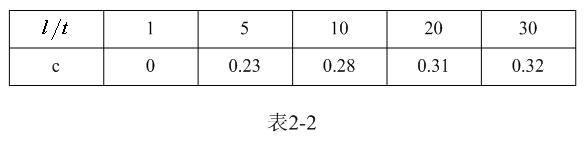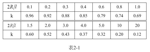 【說明】上式是用來計(jì)算多層線圈繞組、截面為圓形的空心線圈的電感計(jì)算公式。長岡系數(shù)k可查閱表2-1,系數(shù)c可查閱表2-2。當(dāng)線圈內(nèi)部有磁芯時(shí),有磁芯線圈的電感是空心線圈電感的