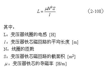 【說明】上式是用來計(jì)算變壓器線圈電感的計(jì)算公式。由于變壓器鐵芯的磁回路基本是封閉的,變壓器鐵芯的平均導(dǎo)磁率相對來說比較大。鐵芯的導(dǎo)磁率一般在產(chǎn)品技術(shù)手冊中都會(huì)給出,但由于大多數(shù)開關(guān)電源變壓器的鐵芯都留有氣隙,留有氣隙的磁回路會(huì)出現(xiàn)磁場強(qiáng)度以及磁感應(yīng)強(qiáng)度分布不均勻,因此,(2-108)式中的導(dǎo)磁率只能使用平均導(dǎo)磁率,技術(shù)手冊中的數(shù)據(jù)不能直接使用。
