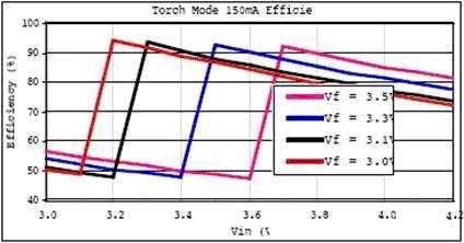 圖4 150mA電筒模式效率(Cin=2.2?F,CFC=0.47?F,Cout=1.0?F)