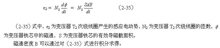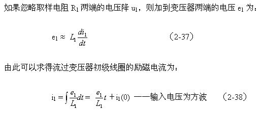 (2-38)式中,e1為加到變壓器T2初級(jí)線圈兩端的電壓(這里為方波),或T1變壓器次級(jí)線圈輸出的電壓(方波);L1為變壓器T2初級(jí)線圈的電感,i1(0)為時(shí)間等于零時(shí)變壓器T2初級(jí)線圈中的勵(lì)磁電流。