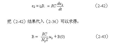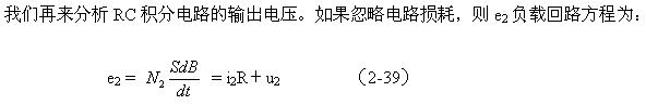 由(2-35)和(2-36)式可以看出,感應(yīng)電動(dòng)勢(shì)是磁通密度對(duì)時(shí)間的微分,那么磁通密度就應(yīng)該是感應(yīng)電動(dòng)勢(shì)對(duì)時(shí)間的積分。因此,對(duì)磁通密度B進(jìn)行顯示必須由一個(gè)積分電路組成。在圖2-15中,RC電路正好有這種積分特性。