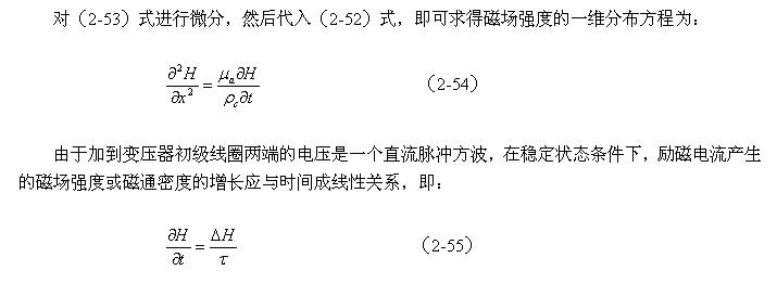 當有一個直流脈沖電壓加到變壓器初級線圈的兩端時,在變壓器初級線圈中就就有勵磁電流通過,并在變壓器鐵芯中產生磁場強度H和磁通密度B,兩者由下式決定: