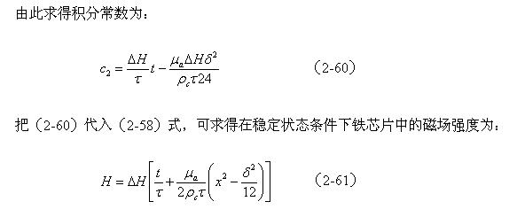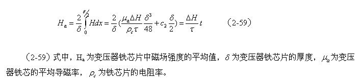 由于在變壓器鐵芯片內,截面磁場強度的平均值Ha,在任一時間內都必須等于電磁感應所要求的值,即滿足(2-45)式的要求,因此對應圖2-18對(2-58)式求平均值得: