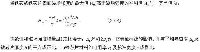 在圖2-19-b中,隨著時間線性增長部分是變壓器初級線圈勵磁電流產生的磁場;Hb是為了補償渦流產生的去磁場,而由變壓器初級線圈另外提供電流所產生的磁場。