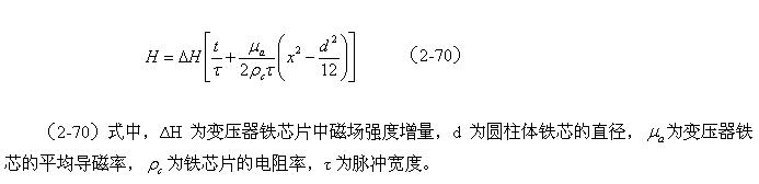 或者,圓柱體變壓器鐵芯的渦流損耗,與磁感強度增量以及鐵芯直徑的四次方成正比,與電阻率及脈沖寬度的平方成反比。