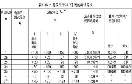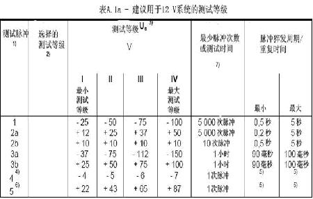 圖2:ISO-7637-2中用于12V/24V系統的測試等級