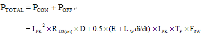MOSFET的功率損耗由導(dǎo)通損耗和開(kāi)關(guān)損耗組成,分別如下: