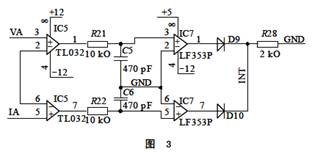 信號檢測板部分標準電壓和電流的有效值轉換電路如圖2所示。