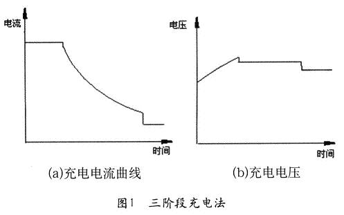 三階段充電法是兩階段等流充電法和恒定等壓充電法相結(jié)合的方式。充電開始和結(jié)束時(shí)采用恒定電流,中間階段為恒定電壓充電。蓄電池在充電初期用較大的電流,經(jīng)過一段時(shí)間改為恒定電壓充電,當(dāng)電流衰減到預(yù)定值時(shí),由第二階段轉(zhuǎn)到第三階段。采用三階段充電法的優(yōu)點(diǎn)是:避免了恒定電壓充電法開始充電電流過大,而后期電流又過小的情況,比二階段等流充電在中間階段更接近充電電流接受率曲線。這種充電法減少了充電出氣量,充電又徹底,延長(zhǎng)了蓄電池使用壽命。三階段充電法充電電流和充電電壓變化曲線如圖1所示。[page]