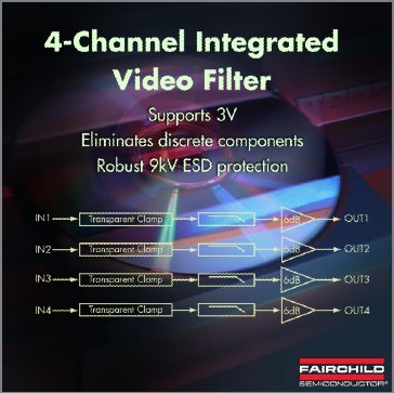飛兆半導體公司(Fairchild Semiconductor)針對現今許多視頻產品平臺逐步淘汰S-video,以及四通道正在成為標準輸出配置之市場趨勢,推出支持機頂盒和DVD播放器市場的四通道集成式視頻濾波器產品FMS6144A,幫助設計人員適應這一轉變。