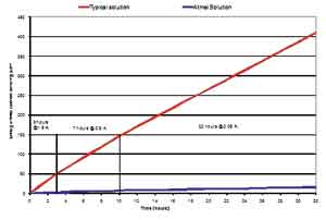 圖6所示為32小時內,一個10Ah電池的放電周期,分別是3h/1.5A,7h/0.6A,以及22h/60mA。溫度變化為±10℃,使用的是5mΩ的感測電阻。采用帶普通校準方法的標準BMU,電荷積聚中的誤差大于400mAh,在這個例子中相當于10Ah電池的4%以上。愛特梅爾的解決方案由于采用了整合有專有校準方法的靈活模擬設計,能夠大大提高精度?;谶@些改進,誤差可被降至20mAh以下,相當于0.2%。