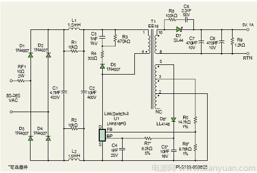 圖2: 5W CV/CC通用輸入充電器電源電路圖