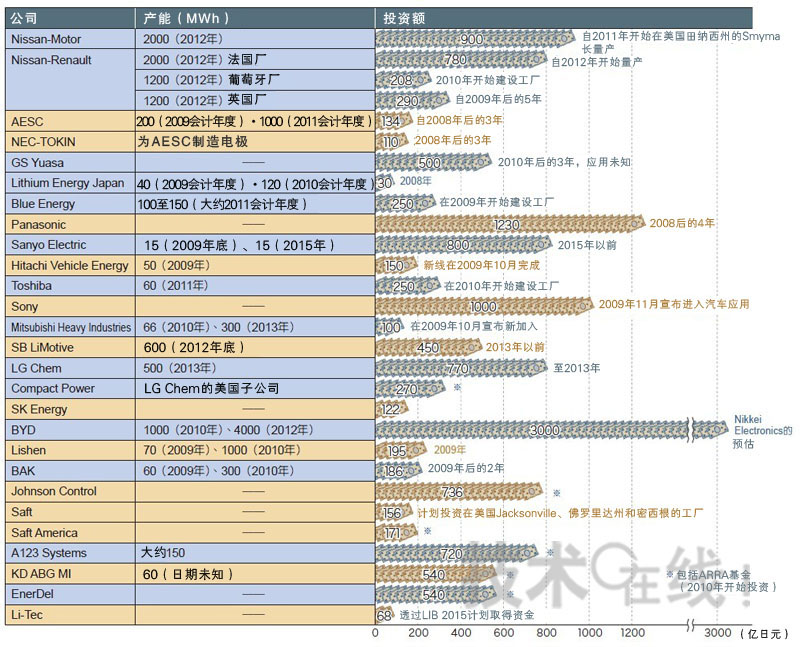 單單是NikkeiElectronics所調(diào)查的投資就已經(jīng)超過1萬億日元了。鋰離子充電電池的帶動應(yīng)用即將從手機(jī)轉(zhuǎn)向電動車。