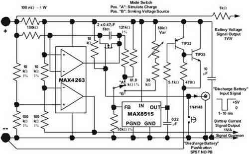 用恒流源對電池充電時電壓將不斷變化,以一定的正斜率上升。這是由于放電和其它電池內部化學變化過程中,電池正極周圍累積的極化離子逐漸減少。因此,充電器的工作點取決于電池連接時間的長短,以及電池的工作歷史。用大多數電子實驗室能夠找到的通用器件構建負載,以模擬這一復雜負載的模型很困難。