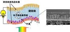 瀨和表示,該太陽(yáng)能電池的基本發(fā)電原理為色素增感型。只是(1)電解質(zhì)采用固體而非液體;(2)采用樹(shù)狀電極+多孔狀鍍金膜代替ITO等透明電極,可實(shí)現(xiàn)基于等離子共振的增感效應(yīng),這兩點(diǎn)與之前不同。