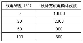 蓄電池的壽命一般是這樣定義的,浮充狀態(tài)下為3-5年或3-8年,并不是說蓄電池在頻繁放電狀態(tài)下使用多少年。對(duì)處于非浮充狀態(tài)下工作的蓄電池,其壽命是按照循環(huán)放電次數(shù)和放電深度兩個(gè)因素衡量,如表1所示。簡(jiǎn)單地以能使用多少年來衡量,是不正確的。