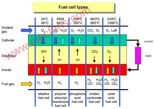 燃料電池是一種設(shè)備,它能利用氫這種地球上最豐富的元素將化學(xué)能轉(zhuǎn)化為電能。PEM燃料電池(最常用的一種燃料電池)中,在多孔陽極(porousanode)與陰極之間有一層電解膜。這層電解膜由一種允許質(zhì)子通過但阻擋電子通過的特殊材料制成。PEM電池工作時,讓氫氣和氧氣分別通過陽極與陰極,從而產(chǎn)生電流。陽極發(fā)生接觸反應(yīng)將氫氣分解為質(zhì)子,這些質(zhì)子通過PEM到達陰極。電子不能穿透PEM,所以會沿著其周圍的一條電路到達陰極,這條電路中電子的移動就形成了電流。