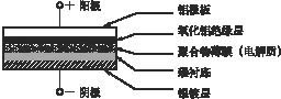 這兩個系列電容器的內(nèi)部結(jié)構(gòu)如圖1所示,用鋁極做陽極,在下表面用電解工藝制成一層氧化鋁絕緣層。采用高分子聚合物薄膜作為固態(tài)電解質(zhì),由碳襯底及鍍銀層作為陰極,外部用塑料封裝。這種多層結(jié)構(gòu)與鋁電解電容器及固態(tài)鉭電解電容器是不同的,在0.1MHz~10MHz頻段有很好的特性。