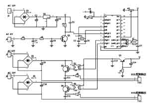 stc12c4052ad單片機自帶A/D轉換器,具有高速、高可靠性,強抗靜電(過4kV快速脈沖干擾),強抗干擾,寬電壓,不怕電源抖動等特點。它完成同步信號檢測(P3.2口,int0中斷輸入端)、控制信號輸出(P3.4、P3.5)、輸出強度調整(P1.1)和工作狀態(tài)指示等功能;整流橋Z1、三端穩(wěn)壓塊u2等構成穩(wěn)壓電源,為整個控制電路提供電源;r1、r2、Q2等完成交流同步信號的輸入,其中,r1、C7、r2、C8濾除高頻脈沖的干擾,同步信號輸入到單片機的int0端;整流橋z2、z3、Q3、Q4等構成獨立的電源,分別驅動可控硅SCR1、SCR2;光耦G1、G2將低壓控制電路與高壓驅動電路隔離,既保證了控制芯片和人身安全,同時具有抗干擾作用;三極管Q1及周圍電路,用于上電延時。上電時,C14不能突變,所以Q1處于截止狀態(tài),Q3、Q4都不能導通,在單片機初始化完成后,P3.4、P3.5處于正常狀態(tài)時,Q1進入導通狀態(tài),避免了SCR1和SCR2同時導通。