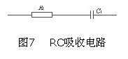 在本設(shè)計中,由于電源容量僅為500W,因此,可以采用簡單的RC吸收電路。電路圖如圖7所示。