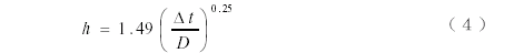 代入數(shù)據(jù)得Gr=1.1673╳10-7,而普朗特?cái)?shù)Pr=0.7085,故Pr× Gr=8.2703╳105,在1╳104~1╳109 之間,判斷流態(tài)為層流。相應(yīng)的對(duì)流換熱系數(shù)計(jì)算公式為