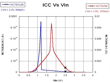 表2:飛兆半導(dǎo)體的NC7SVL低ICCT門電路。
