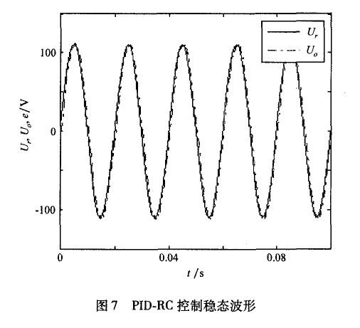 PID控制對于周期性信號無法做到無差跟蹤,存在周期性穩態誤差。嵌人了重復控制器的系統,輸出能夠很好地跟蹤輸入信號,系統迅速進入穩態,表現出良好的動態性能。