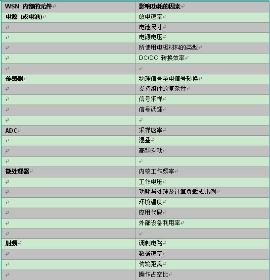 有幾種因素影響能量收集系統或 WSN 的功耗特性。表 1 概要羅列了這些因素。