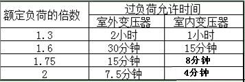 過負(fù)荷運(yùn)行是指變壓器運(yùn)行時(shí)超過了銘牌上規(guī)定的電流值。過負(fù)荷分為正常過負(fù)荷和事故過負(fù)荷兩種,前者是指在正常供電情況下,用戶用電量增加而引起的,它往往使變壓器溫度升高,促使變壓器絕緣老化,降低使用壽命,所以不允許變壓器過負(fù)荷運(yùn)行。特殊情況下變壓器短時(shí)間內(nèi)的過負(fù)荷運(yùn)行,也不能超過額定負(fù)荷的30%(冬季),在夏季不得超過15%。對(duì)后者,事故過負(fù)荷與允許過的時(shí)間要求見下表。