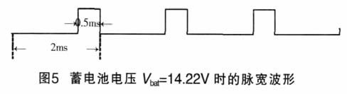 當(dāng)蓄電池的電壓Vbat=14.22V 時(shí),其脈寬波形如圖5所示。