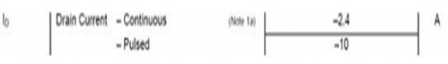 第二步是選擇MOSFET的額定電流。視電路結(jié)構(gòu)而定,該額定電流應(yīng)是負載在所有情況下能夠承受的最大電流。與電壓的情況相似,設(shè)計人員必須確保所選的MOSFET能承受這個額定電流,即使在系統(tǒng)產(chǎn)生尖峰電流時。兩個考慮的電流情況是連續(xù)模式和脈沖尖峰。該參數(shù)以FDN304P管DATASHEET為參考,參數(shù)如圖所示: