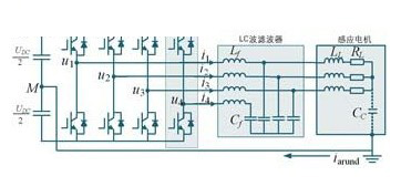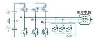 m.d.manjrekar和a.rao等學者提出了一種通過添加輔助零狀態開關,以消除因零開關狀態而產生共模電壓的方案,電路結構見圖4所示。這種輔助零狀態合成器方法在經濟方面很有吸引力,并且還可以使消除感應電機側共模電壓。