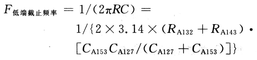 TFA9810T輸入端采用可抑制共模干擾的全差分輸入電路。以圖8 AMP-Rin輸入端為例,RA128/RA133/CA139構成負反饋低通濾波器,用于衰減反饋信號中高頻載波成分。增加低頻成分反饋量,特別是直流成分。有效改善了零輸入時因輸入信號直流電平與比較器門限電壓差異形成的占空比誤差,調整RA128也可實現TFA9810T增益控制,使Au(dB)=20log(VOUT/VIN)≌20log(RA128/RA132)。器件CA153/RA132/RA133及TFA9810T內阻構成高通濾波器,用于對輸入信號的緩沖。若CA153容值過小,會影響低頻響應,理論確定公式為: